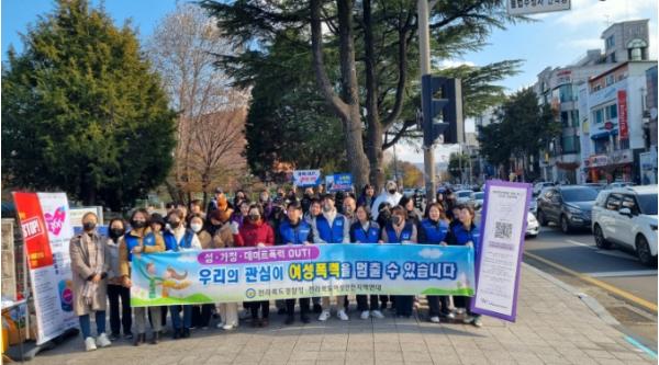 [중앙뉴스라인, 김용범기자] 전북도는 여성폭력 추방주간을 맞아 28일 전북대 구정문앞에서 여성폭력 근절을 위한 캠페인 행사를 개최했다.