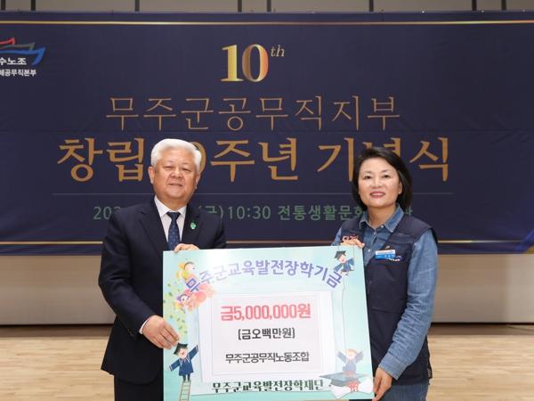 한편, 전국공무직노조 무주군지부는 지난 2018년부터 매년 무주군교육발전장학재단 측에 장학금을 기탁해 귀감이 되고 있으며 현재까지 기탁한 금액은 9백만 원에 달한다.