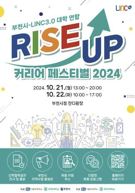 [중앙뉴스라인, 우제헌기자] 부천시는 오는 10월 21~22일 이틀간 부천시청 잔디광장에서 ‘부천시-LINC3.0 대학연합 RISE UP 커리어 페스티벌’을 개최한다.