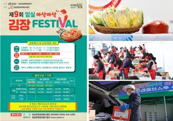 군은 내달 22일부터 24일까지 임실치즈테마파크 일원에서 최상의 품질을 자랑하는 절임배추와 양념 등을 앞세워‘제9회 임실 아삭아삭 김장페스티벌’김장축제를 연다.
