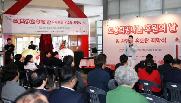 [중앙뉴스라인, 한장원기자] 도봉구는 11월 12일 도봉구청 1층 로비에서 ‘사랑의 온도탑 제막식’을 열고 따뜻한 겨울나기 집중모금 활동에 들어간다고 밝혔다.