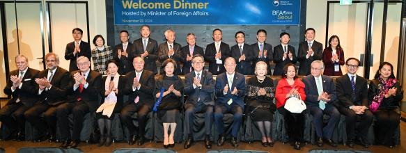 [중앙뉴스라인, 신기철기자] 조태열 외교부장관은 11월 22일 2024 보아오포럼 서울회의(Boao Forum for Asia Seoul Conference 2024) 주요 참석자들을 위한 환영만찬을 주최하여, 국제 현안 및 역내 협력 강화방안 등에 대해 의견을 교환하는 한편, 글로벌중추국가 비전 실현을 위한 우리 정부의 노력과 계획을 소개했다. 이번 만찬에는 반기문 보아오포럼 이사장, 장 쥔(Zhang Jun) 보아오포럼 사무총장(前 주유엔중국대사), 다닐로 튀르크(Danilo T?rk) 前 슬로베니아 대통령, 글로리아 마카파갈 아로요(Gloria Macapagal-Arroyo) 前 필리핀 대통령, 샤히드 하칸 압바시(Shahid Khaqan Abbasi) 前 파키스탄 총리 및 장 위(Zhang Yu) 이빈 우량예 그룹 부회장 등 전직 정상급 인사, 중국 정·재계 인사들이 참석했다.