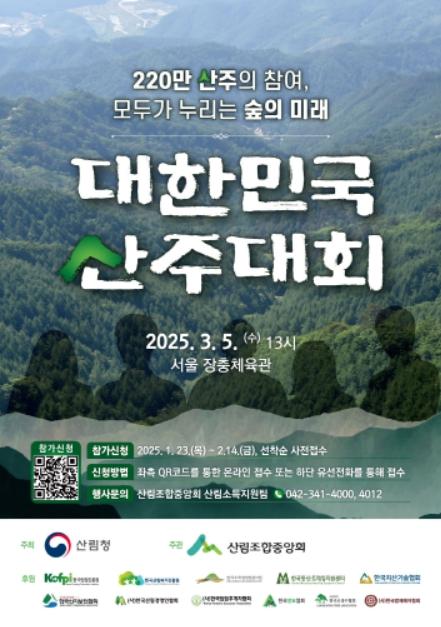 ‘대한민국 산주대회’에 참가를 희망하는 경우 2월 14일까지 ‘대한민국 산주대회’ 큐알코드에 접속하거나 산림조합중앙회 산림소득지원팀으로 유선신청도 가능하다.