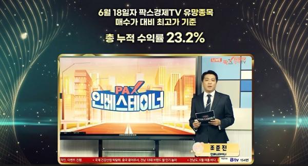 [중앙뉴스라인, 한성영기자] 최근 팍스경제TV에 매주 금요일 오전 11시에 출연 중인 조준진 전문가의 수익률이 화제다.