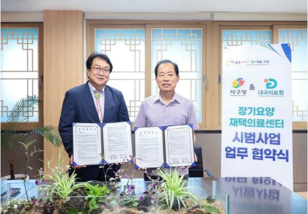 [중앙뉴스라인, 한소연기자] 대구 서구는 7월 8일, 대구의료원(원장 김시오), 참좋은연합의원(원장 박계원)과 장기요양 재택의료센터 시범 사업 업무협약을 체결했다고 밝혔다.