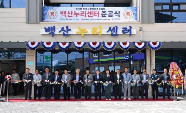 ‘백산누리센터’는 다목적 강당, 공동세탁실, 공유주방, 동아리실 등 다양한 시설을 갖춘 주민 공동이용시설이다. 지역 주민의 문화․복지 수요를 반영해 설계됐으며, 향후 백산면 중심지 기능을 수행할 핵심 공간으로 운영될 예정이다.