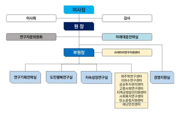 (미래환경 변화에 대한 선제적 대응과 혁신적 현안관리를 위한 미래대응전략실 신설) 중장기 미래 아젠다의 선제적 발굴과 유연하고 신속한 현안 대응을 위해 미래대응전략실을 원장 직속으로 신설했으며, 연구기획전략실장이 겸직함으로써 전략적 연계성을 높였다.