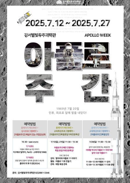 진교훈 강서구청장은 “이번 아폴로 주간은 인류의 달 착륙 도전정신을 기념하고, 미래 세대에게 우주 과학에 대한 꿈과 상상력을 심어주기 위해 마련됐다”며, “가족과 함께 우주를 체험하며 특별한 추억을 쌓는 소중한 시간이 되시길 바란다”고 말했다.