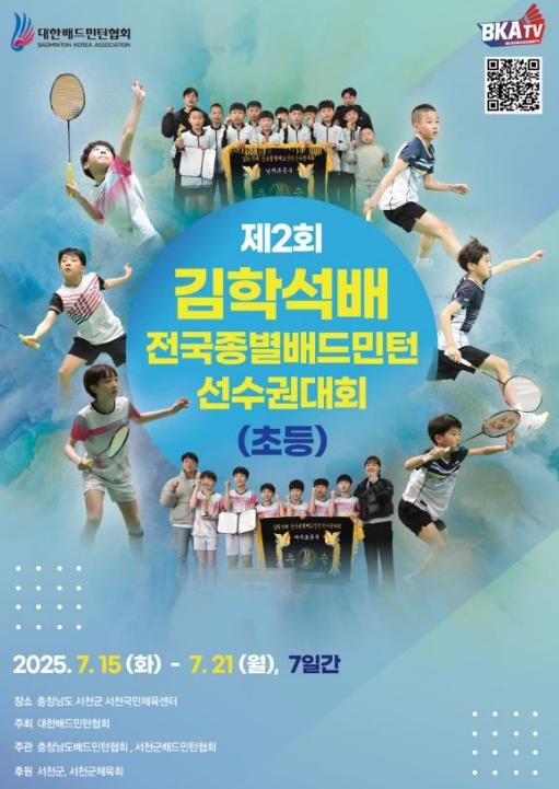 이번 대회는 대한배드민턴협회가 주최하고, 충청남도배드민턴협회와 서천군배드민턴협회가 공동 주관하는 전국 규모의 권위 있는 대회로, 전국 각지에서 800여명의 초등부 배드민턴 유망주들이 참가해 기량을 겨룰 예정이다.