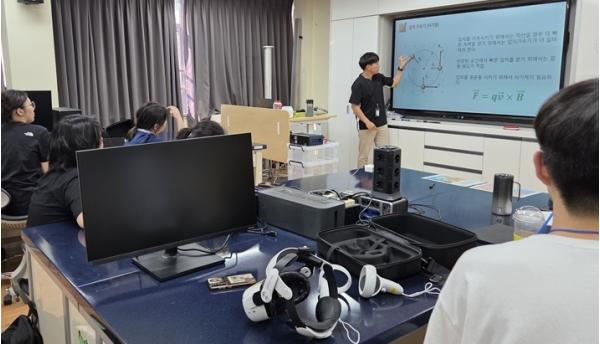 시교육청은 프로그램에 앞서 5차례에 걸쳐 사전교육을 진행했다. 4차 사전교육에서는 광주과학고등학교 김동식 교사가 ‘미리 경험하는 노벨 과학자의 길’을 주제로 VR을 활용해 유럽입자물리연구소를 미리 경험하고 과학적 원리를 탐구하는 탐구보고서 작성 방법을 소개하는 시간도 가졌다.