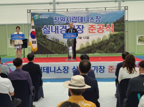 [중앙뉴스라인, 우제헌기자] 창원특례시는 7월 12일 창원시립테니스장 실내경기장 준공식을 개최했다고 밝혔다. 이날 열린 준공식에는 조명래 제2부시장을 비롯해, 김종양 국회의원과 허성무 국회의원, 경남도의회와 창원시의회 의원, 창원시테니스협회 관계자들이 다수 참석했다.