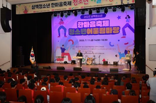 [중앙뉴스라인, 우제헌기자] 상주시는 법무부 청소년범죄예방위원 상주지구위원회 주관으로 11일 오후 2시 상주문화회관 대공연장에서 청소년과 시민, 유관기관 단체장 등 400여 명이 참석한 가운데 “2025년 삼백청소년 한마음 축제”를 개최했다.