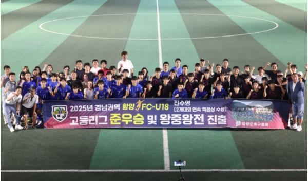 함양군체육회(회장 안병명)는 지난 10일 경남 도내에서 펼쳐진 2025년 경남권역 고등리그 최종 라운드에서 함양군을 대표한 함양FC-U18팀이 준우승을 차지했으며, 전국 왕중왕전 축구대회에 경남 대표로 출전권을 획득하게 됐다고 밝혔다.