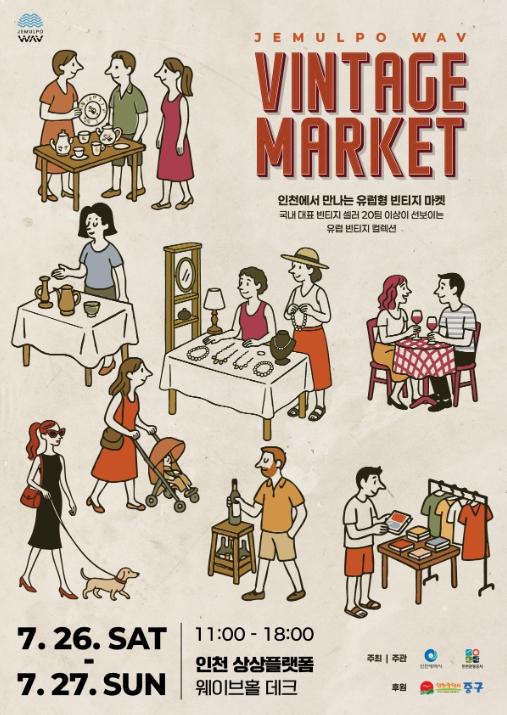 이번 제2회 제물포 웨이브 마켓에는 총 70팀의 인천 대표 로컬 브랜드가 참여하며, 지역 특화 프로그램으로 빈티지 마켓도 함께 개최된다. 빈티지 마켓에는 국내 대표 빈티지 셀러 20팀이 참여하여 ‘인천에서 느끼는 유럽’이라는 주제로 유럽에서 직접 공수한 빈티지 소품을 선보일 예정이다.