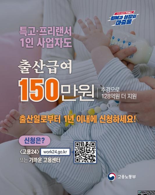 고용노동부, 특고·프리랜서 1인 사업자도 출산급여 150만 원