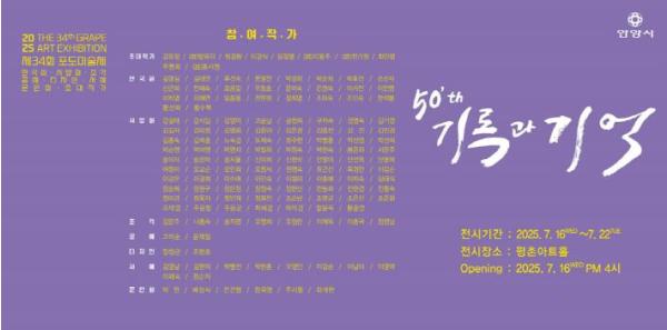 [중앙뉴스라인, 우제헌기자] 1992년부터 시작한 안양 포도미술제는 과거 지역을 풍요롭게 해 주던 포도라는 상징을 통해 정신과 전통을 되새기며, 그 뜻을 예술로 전승하고자 하는 의지의 발현이다. 이번 "2025 제34회 포도미술제"는 사단법인 한국미술협회 안양지부 주최로 2025년 7월 16일~ 7월 2일까지 안양 평촌아트홀에서 진행 중이다.