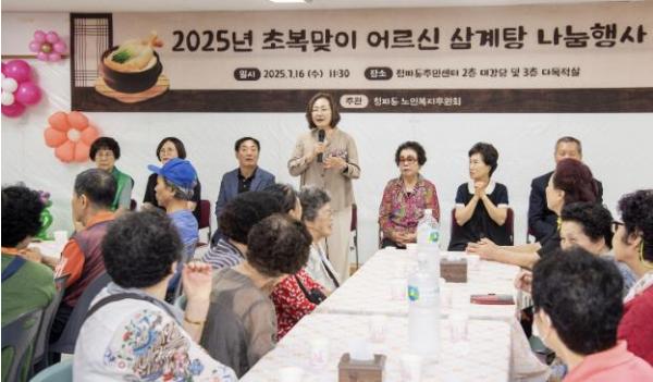 한편, 올해 초복맞이 어르신 삼계탕 나눔은 16개 동별로 6월 27일부터 오는 7월 25일까지 진행하며 총 3,100명의 어르신이 참석할 예정이다.