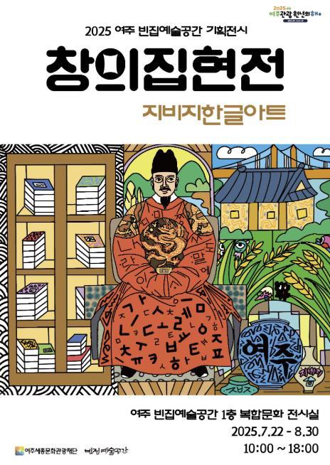 [중앙뉴스라인, 우제헌기자] 여주세종문화관광재단은 오는 7월 22일부터 8월 30일까지 빈집 예술공간 1층에서 기획 전시 《창의집현전: 한글아트지비지》를 개최한다고 밝혔다.