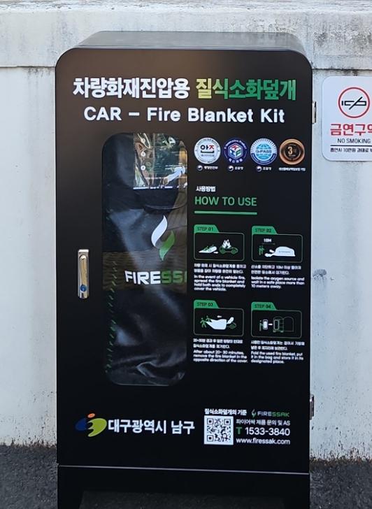 이에 남구청은 2024년 전기차 화재대응을 위한 질식소화포 설치 예산으로 특별교부세 2억원을 확보했고, 2025년 7월 남구청사, 동행정복지센터, 공영주차장 등 관내 시설 31개소에 질식소화포 설치를 완료했다.