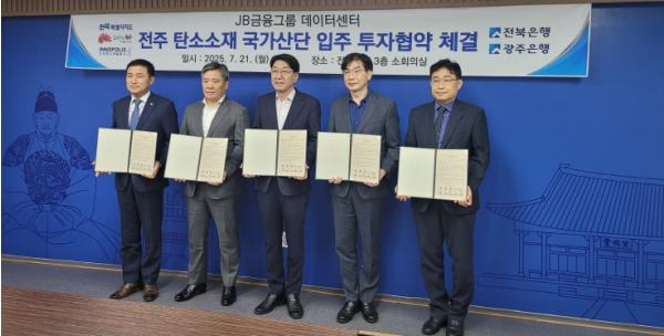 도는 21일 전주시청에서 전북은행·광주은행과 데이터센터 구축을 위한 540억 원 규모의 투자협약(MOU)을 체결했다고 밝혔다. 이로써 JB금융그룹의 핵심 IT시설인 차세대 데이터센터 및 통합 IT센터가 전주 탄소소재 스마트그린 국가산단 내에 들어설 예정이다.