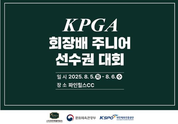 (사)한국프로골프협회(회장 김원섭, 이하 KPGA)가 주최 및 주관하고 문화체육관광부와 서울올림픽기념국민체육진흥공단이 후원하는 ‘KPGA 회장배 주니어 선수권대회’가 5일부터 6일까지 양일간 전남 순천 소재 파인힐스 골프&호텔(파72. 6,811야드)에서 개막한다.