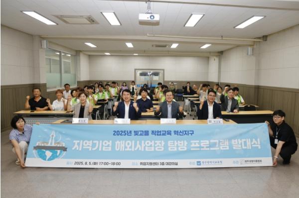 광주시교육청은 5일 취업지원센터에서 이정선 교육감, 광주경영자총협회 김동찬 부회장, 참가 학생, 학부모 등이 참석한 가운데 ‘빛고을 직업교육 혁신지구 지역기업 해외사업장 탐방 프로그램’ 발대식을 개최했다.