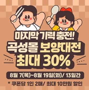[중앙뉴스라인, 김민수기자] 곡성군은 무더위가 절정에 이르는 8월을 맞아 곡성군 공식 온라인 쇼핑몰‘곡성몰’에서 여름철 보양식 특별 기획전인‘마지막 기력충전! 곡성몰 보양대전’을 8월 7일부터 오는 19일까지 13일간 진행한다고 7일 전했다.