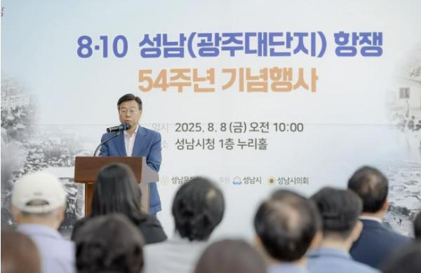 신 시장은 축사를 통해 “성남시는 이주민들의 아픔과 용기 위에 세워진 도시”라며 “8·10 항쟁은 성남의 시작점이자 정체성의 근간이 되는 역사적 사건”이라고 강조했다.