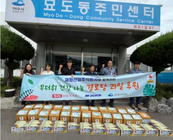 [중앙뉴스라인, 이대수 기자] 여수시 삼일동 소재 재원산업㈜(대표 심성원, 심재원)이 지난 7일 묘도동 경로당 어르신들을 위해 묘도동 주민센터에 과일과 음료를 전달하며 지역사회에 온정을 전했다.