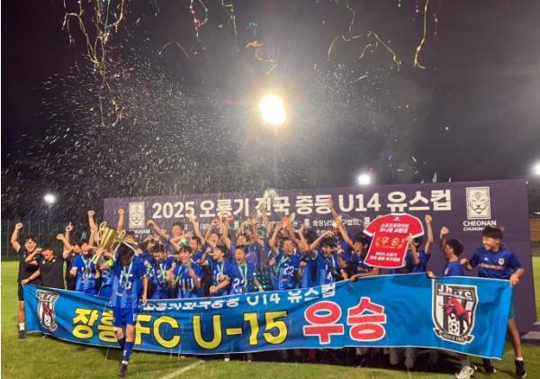 [중앙뉴스라인, 우제헌기자] 장흥군 축구 스포츠클럽인 장흥FC가 충남 천안에서 열린 ‘2025 오룡기 전국 중등 축구대회’에서 저학년부(U-14) 우승을 차지했다.