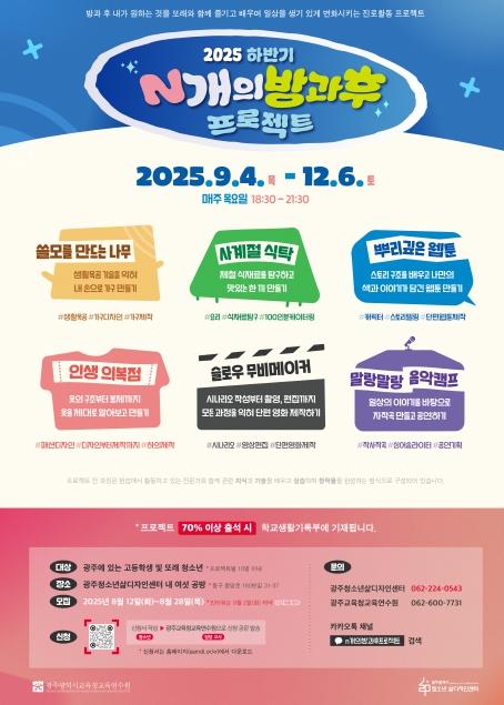 [중앙뉴스라인, 전은희기자] 광주광역시교육청교육연수원과 ‘N개의 방과후 프로젝트’ 참여자를 오는 28일까지 모집한다.