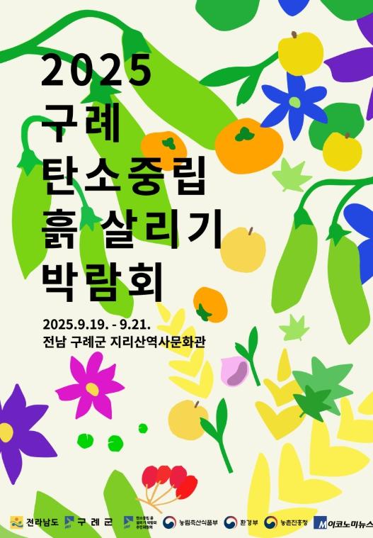 [중앙뉴스라인, 양병남기자] 전남 구례군은 오는 9월 19일부터 21일까지 3일간 지리산역사문화관 일원에서 ‘2025 구례 탄소중립 흙 살리기 박람회’를 개최한다.