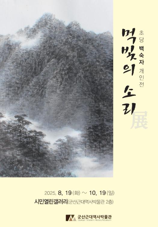 [중앙뉴스라인, 김용범기자] 군산근대역사박물관은 8월 19일부터 10월 19일까지 박물관 2층 시민열린갤러리에서 초당 백숙자 작가의 개인전 『먹빛의 소리』를 개최한다.