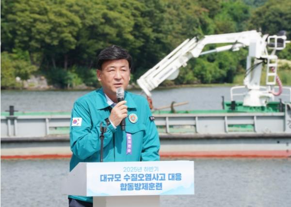 이번 훈련은 2025년 을지연습 기간 중 대규모 수질오염사고 발생 상황에 대비하기 위해 마련됐으며 한강유역환경청, 한국환경공단, 경기도 수자원본부, 광주시가 공동 주관하고 한국수자원공사, 한국수력원자력, 한강통합물환경센터, 광주소방서, 양평소방서 등 관계기관 총 60여 명이 참가했다. 또한, 선박 9척과 장비 10여 대가 동원돼 실전과 같은 훈련이 진행됐다.