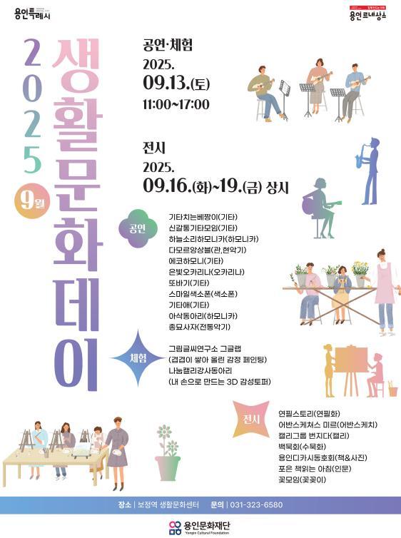[중앙뉴스라인, 우제헌기자] 용인문화재단은 오는 9월 13일 보정역 생활문화센터에서 ‘9월 생활문화데이’를 개최한다고 밝혔다.