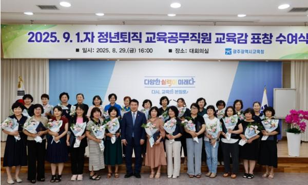 이번 표창 대상은 9월 1일자 정년퇴직 교육공무직원 85명 중 5년 이상 공립학교와 기관에서 근무하며 광주교육 발전에 기여한 52명이다.