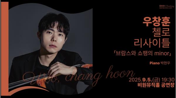 [중앙뉴스라인, 우제헌기자] BMH 레지던시 6인의 리사이틀 시리즈 세 번째, 첼리스트 우창훈이 선보이는 브람스와 쇼팽이 작곡한 단조 구성의 첼로 소나타 콘서트 개최