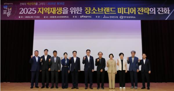 전북연구원은 17일 오전 8시 전북특별자치도청 대회의실에서 ‘2025 지역재생을 위한 장소브랜드: 미디어전략의 진화’를 주제로 '전북 백년포럼' 제38강을 개최했다.