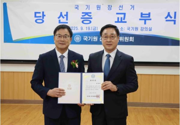 한편, 윤 당선인은 9월 19일 오후 6시 30분부터 국기원 강의실에서 개최된 ‘국기원장선거 당선증 교부식’에서 국기원 선거관리위원회 위원장으로부터 당선증을 전달받았다.