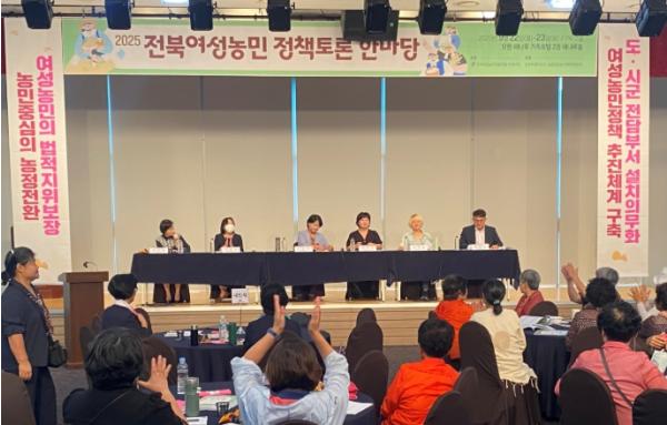 [중앙뉴스라인, 김용범기자] 전북특별자치도는 9월 22일 오후 2시 부안 해나루 가족호텔에서 '2025 전북여성농민 정책토론 한마당'을 개최했다고 밝혔다. 이번 토론회에는 여성농업인 150여 명이 참석해 여성농업인의 지위와 역할을 제도적으로 보장하기 위한 다양한 방안을 논의하며 현장의 목소리를 적극 전달하는 자리가 됐다.