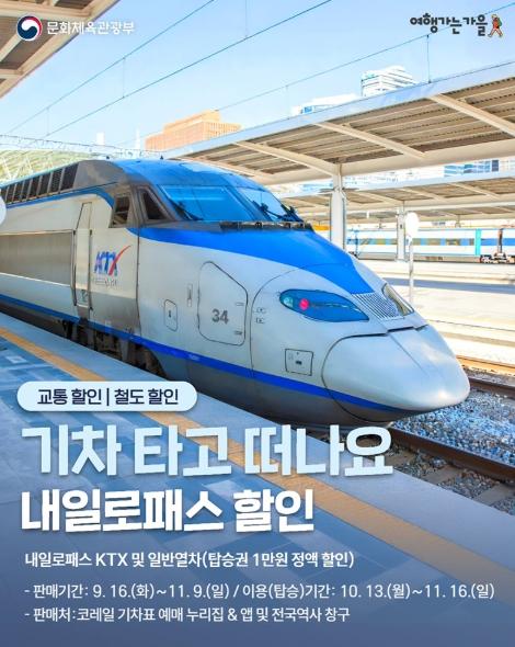 문화체육관광부, 기차타고 떠나요 내일로패스 할인