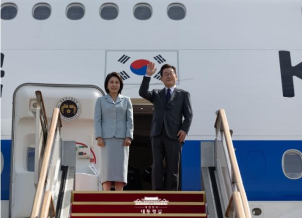 [중앙뉴스라인, 우제헌기자] 이재명대통령이 탑승한 공군 1호기가 미국 뉴욕으로 출발했다.