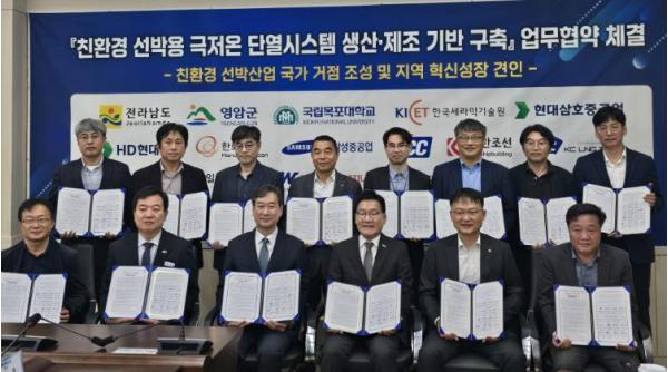 [중앙뉴스라인, 김민수기자] 전라남도는 조선해양 분야 최고의 전문성과 기술력을 보유한 대학, 연구기관, 기업들과 친환경 선박용 극저온 단열시스템 생산·제조 기반 구축 업무협약을 지난 6일 목포대학교에서 체결했다.