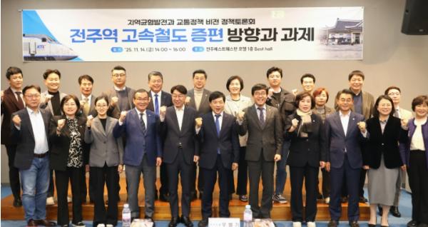 시와 전주시정연구원은 14일 베스트웨스턴플러스 전주호텔 베스트홀에서 우범기 전주시장과 남관우 전주시의회 의장, 이성윤 국회의원(더불어민주당, 전주시을), 교통·철도 분야 전문가와 학계, 관계기관, 시민 등 100여 명이 참석한 가운데 ‘지역 균형발전과 교통정책 비전–전주역 고속철도 증편 방향과 과제’ 정책토론회를 개최했다.