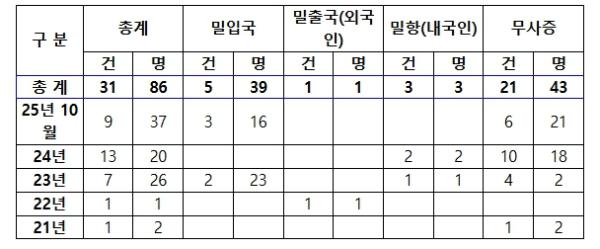 특히, 이들은 낚시객으로 위장하고, 해상날씨 전용앱을 사용하여 밀입국 일정을 치밀하게 준비했으며 목적지 도착전 GPS 전원을 차단하여 감시망을 회피하는 등 밀입국은 갈수록 고도화・지능화되고 있는 실정이다.