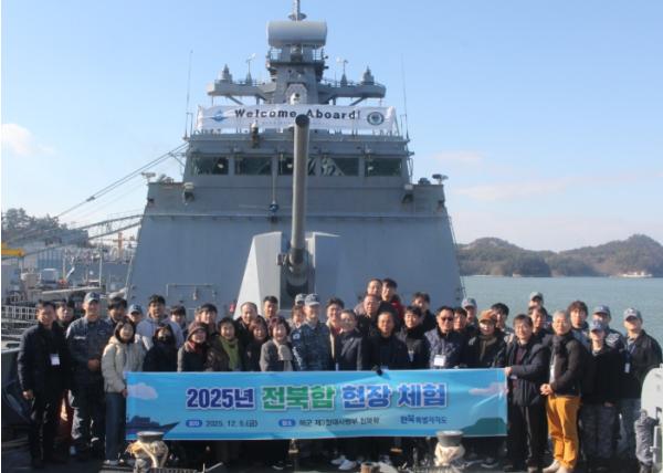 [중앙뉴스라인, 김용범기자] 전북특별자치도는 5일 해군 제3함대 소속 전북함을 방문하여 도내 병역명문가, 안전모니터봉사단, 도시군 공무원 등 총 33명이 참여한 안보 현장체험 프로그램을 실시했다고 밝혔다.