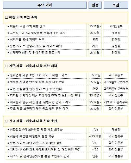 우선, 해킹에 취약한 IP카메라에 대한 보안조치 이행 안내와 피해자 보호를 추진한다.