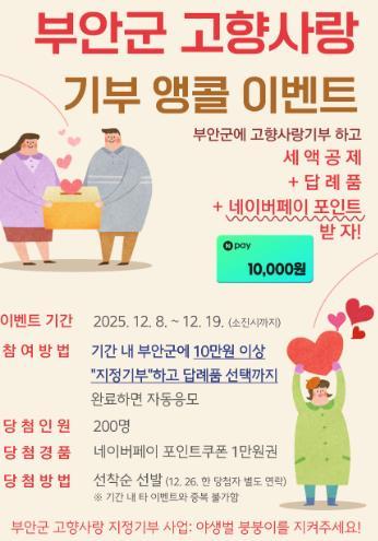 군은 “기부자들의 높은 호응이 확인된 만큼 참여 기회를 확대해달라는 요청이 이어졌다”며 “이에 앵콜 이벤트를 추가로 마련했다”고 설명했다.