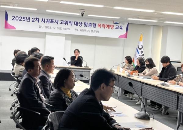 [중앙뉴스라인, 백흥순기자] 서귀포시는 5일 시청 별관 별넷마당에서 5급이상 고위공직자 22명을 대상으로 2차 맞춤형 별도 폭력예방교육을 실시했다고 밝혔다.