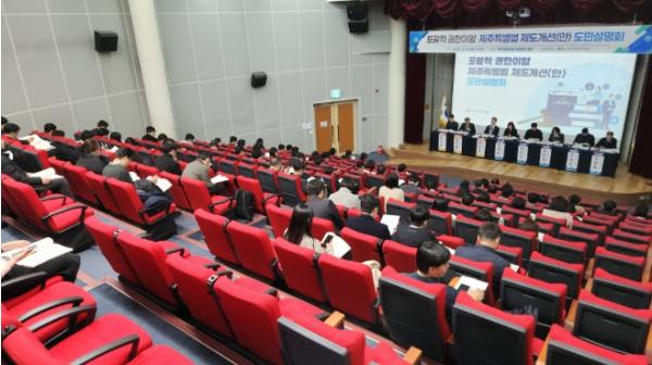[중앙뉴스라인, 백흥순기자] 제주특별자치도는 15일 오후 1시 30분부터 제주웰컴센터 웰컴홀에서 공무원과 도민 등 200여명이 참여한 가운데 포괄적 권한이양 제주특별법 제도개선안에 대하여 도민 이해도를 높이고, 다양한 의견 수렴을 위해 도민설명회를 개최했다.